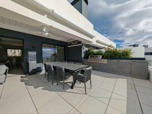Ático en venta en , Marbella con 3 dormitorios, 3 baños, 1 baño en suite y con orientación sur/oeste, con piscina comunitaria y garaje privado (2 plazas). Respecto a las dimensiones, la propiedad presenta 247,7 m² construidos, 114,5 m² en interior y 123,9 m² de terraza. Tiene las siguientes características próxima a la montaña, aire acondicionado, cocina totalmente equipada, trastero, sala de invitados, almacén, gimnasio, alarma, entrada de seguridad, cristal doble, videoportero, a estrenar, barbacoa, servicio de seguridad 24h, aseo para invitados, terraza privada, vistas al mar, vistas al campo, vistas a la montaña, vistas al golf, suelo radiante (toda la casa), persianas de seguridad, sistema domótico, internet – wi-fi, terraza cubierta, persianas eléctricas, ascensor, vistas panorámicas, parque infantil cercano, cerca del golf, terraza descubierta, puertas de cristal, balcón, accesible para movilidad reducida, recientemente renovado, cerca de la ciudad, cámaras de vigilancia y animales permitidos.