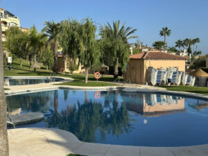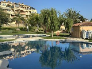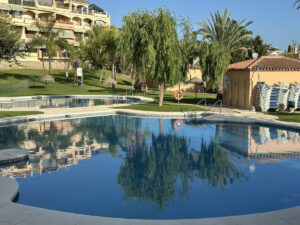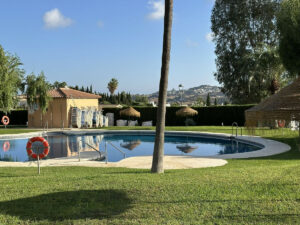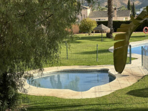 La urbanización ofrece ascensor, piscina comunitaria y zonas ajardinadas, creando un entorno tranquilo y cuidado. Su ubicación privilegiada permite un fácil acceso a campos de golf, colegios, restaurantes y transporte público, combinando exclusividad y comodidad en un solo lugar.