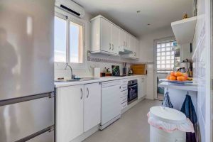 Uno de los grandes protagonistas de esta propiedad es su fantástica terraza, pensada para vivirla de verdad. Aquí encontrará una cocina exterior perfecta para reuniones y cenas al aire libre, así como espacio incluso para hacer ejercicio en la cinta de correr mientras contempla las vistas al Mediterráneo. Es una terraza que amplía la vivienda y la convierte en un auténtico refugio al sol.