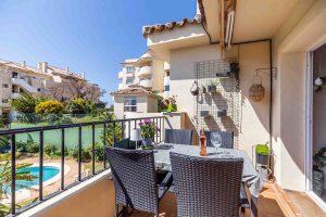 Situado en una popular urbanización dentro de una exclusiva zona de golf, el apartamento disfruta de una posición envidiable junto a Miraflores Golf, lo que lo convierte en una opción ideal para aficionados al golf y para quienes buscan tranquilidad, vistas y cercanía a la costa. Además, la playa se encuentra a solo 1.000 metros, permitiéndole disfrutar fácilmente tanto del golf como del mar.