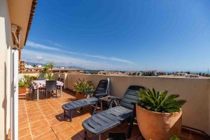 Ático de 3 dormitorios con vistas al mar, junto al golf y con una espectacular vida exterior