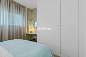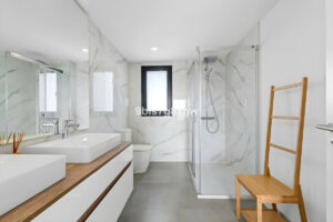 La suite principal cuenta con un baño privado con ducha, amplios armarios empotrados y acceso directo a la terraza. Otros dos dormitorios dobles, perfectos para niños o invitados, también disponen de armarios empotrados y comparten un segundo baño.