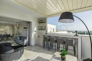 Su impresionante terraza de 50 m², orientada al sur, es el lugar ideal para disfrutar del sol durante todo el día y de vistas panorámicas al mar y a la ciudad, perfectas para relajarse o compartir momentos únicos.