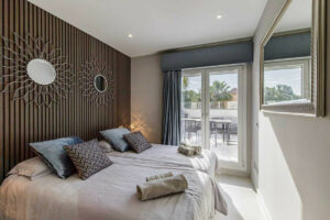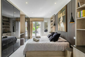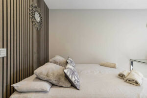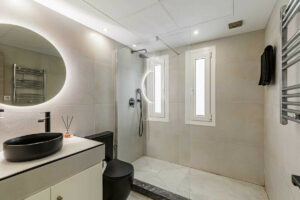 La propiedad cuenta con 3 amplios dormitorios y 2 baños, distribuidos en 120 m² construidos, ofreciendo un ambiente moderno y elegante tras su reciente renovación.