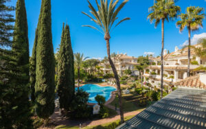 Este excepcional ático dúplex de exquisito diseño, con orientación suroeste, ofrece una impresionante vista panorámica de los galardonados jardines de Las Alamandas, en Nueva Andalucía, proporcionando un equilibrio ideal entre sol y sombra en sus amplias terrazas. Recientemente reformado con los más altos estándares contemporáneos e incorporando la última tecnología en domótica, este extraordinario ático combina la privacidad, el lujo, la comodidad y la elegancia de una villa con el prestigio y el atractivo añadidos de residir en una de las zonas más exclusivas de Marbella.