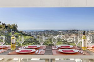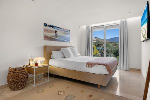 De frente, se despliega el corazón de la vivienda: una cocina, comedor y sala de estar de concepto abierto, realzados por puertas acristaladas de suelo a techo que conectan a la perfección el interior con una impresionante terraza exterior. Aquí podrá disfrutar de vistas panorámicas al mar y a la montaña, perfectas para tomar el café de la mañana o cenar al aire libre con sus seres queridos. A la derecha, un dormitorio con unas vistas impresionantes a las montañas y con baño en suite.