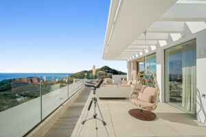 Este excepcional ático dúplex ocupa una de las mejores posiciones dentro de la exclusiva comunidad de Palo Alto en Ojén, ofreciendo vistas panorámicas al mar totalmente despejadas sobre la costa mediterránea.