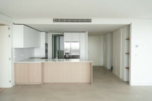 -Un salón y cocina de concepto abierto que se integran a la perfección con el espacio exterior.