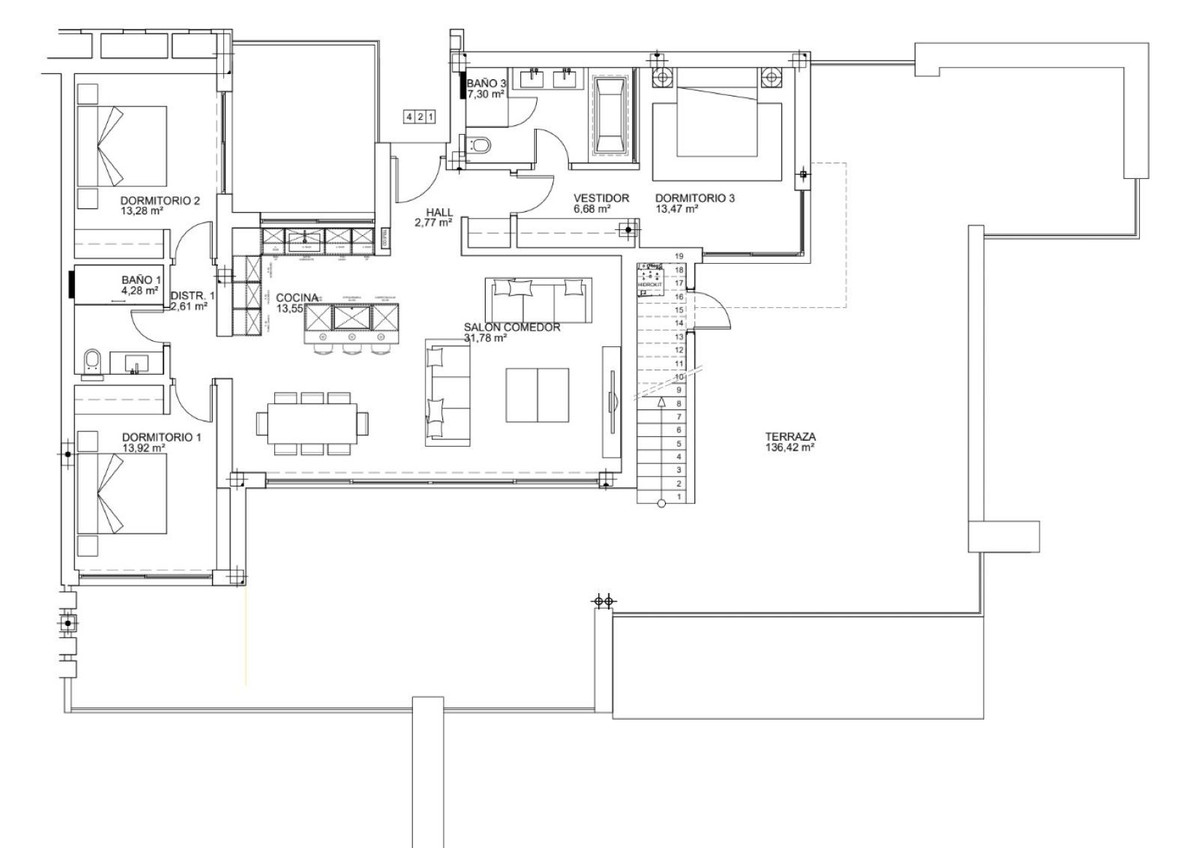 Pocas propiedades combinan este nivel de amplitud, privacidad e impacto arquitectónico. La azotea transforma este ático en una residencia emblemática de auténtica distinción.