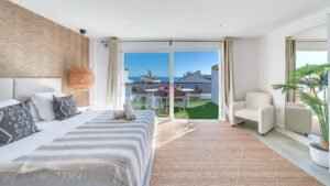 El apartamento ofrece 2 dormitorios y 2 baños en el nivel de entrada, junto con una luminosa sala de estar abierta a una amplia terraza y una cocina totalmente equipada con zona de lavandería. Arriba, encontrará el dormitorio principal con su propio baño y una enorme terraza orientada al sur para disfrutar del sol y las vistas.