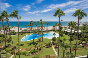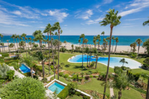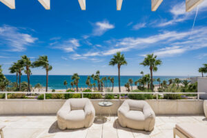 Desde su ubicación privilegiada en primera línea de playa, esta vivienda ofrece una experiencia visual y sensorial difícil de igualar: vistas infinitas al azul del Mediterráneo, la playa dorada de Marbella y la majestuosa silueta de La Concha, una postal viva que cambia con la luz del día.