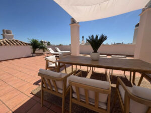 Este magnífico ático de dos plantas se encuentra en la exclusiva zona residencial de Río Real, al este de Marbella, y combina a la perfección el lujo y la comodidad. Con una amplia superficie habitable de 138 m² e impresionantes terrazas de 175 m², incluyendo una terraza principal de 100 m² con vistas al mar, esta propiedad ofrece un amplio espacio para relajarse y disfrutar. Es ideal como inversión, residencia familiar o lugar para unas vacaciones tranquilas.