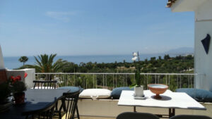 Su orientación es sureste, con cuatro terrazas, dos de ellas con vistas al campo de golf de Rio Real y las dos terrazas principales con magníficas vistas despejadas al mar.