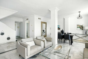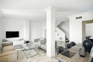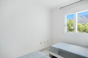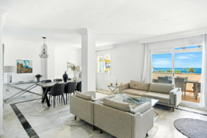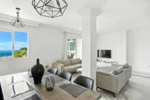 Precioso apartamento orientado al sur con magníficas vistas al mar, situado en la codiciada comunidad de Pinos de Nagüeles, en la prestigiosa Milla de Oro de Marbella. A poca distancia de la playa, tiendas, restaurantes, cafeterías y el paseo marítimo, y a poca distancia en coche de campos de golf y escuelas internacionales. Esta encantadora propiedad esquina goza de una posición privilegiada y consta de tres dormitorios y tres baños, con el dormitorio principal en suite. Los dos dormitorios de arriba tienen cada uno su propia terraza privada. También hay un luminoso y amplio salón-comedor y una terraza privada principal, perfecta para relajarse o cenar al aire libre. La cocina está totalmente equipada y diseñada para funcionalidad, completa con un lavadero separado. La propiedad ofrece la combinación perfecta de comodidad y ubicación, dentro de un desarrollo cerrado con seguridad las 24 horas, jardines muy bien mantenidos, pista de paddle/tennis, casa club y una gran piscina comunitaria. Otras características incluyen suelo de mármol, aire acondicionado, ascensor, plaza de aparcamiento subterráneo convenientemente cerca del ascensor, y una parada de autobús a pocos cientos de metros del apartamento. La comunidad ofrece un entorno pacífico pero bien conectado.