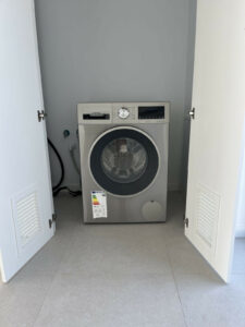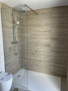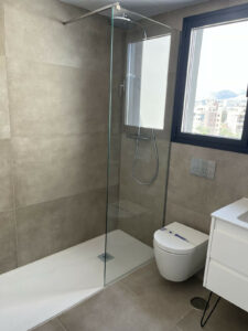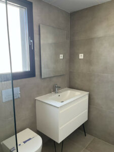 Suelos radiantes en toda la casa, aerotermia y sanitarios suspendidos.
