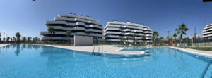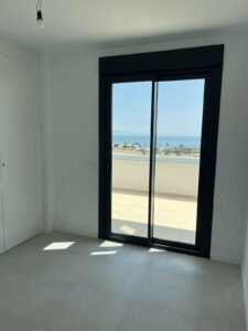 Exclusivo y único Ático frontal al mar en residencial de lujo, en primera línea de la playa de Los Álamos, con 3 Dormitorios y 2 Baños exteriores; salón-cocina y dormitorios con acceso a la terraza principal, y todos frontales a la zona de piscina/jardines y al mar. Máximas calidades: cocina totalmente equipada (marca Bosch), aerotermia, domótica, suelo radiante, puerta acorazada, persianas motorizadas, armarios revestidos con iluminación led, …; Superficie Construida de 201,3m2 (118,2m2 de vivienda y 83,1m2 de terrazas); Superficie Útil de 175,0m2 (100,6m2 de vivienda y 74,4m2 de terrazas); 2 Plazas de aparcamientos muy amplias de 16,3m2 y 16,5m2 (juntas y sin pilar de separación); Trastero de 10,0m2.