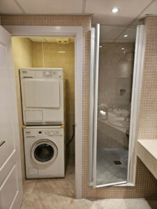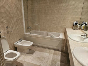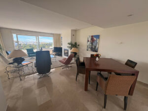 El amplio apartamento ofrece tres dormitorios elegantes y dos baños de diseño. El salón con chimenea crea un ambiente cálido y acogedor, mientras que los suelos de mármol con calefacción radiante y el aire acondicionado en toda la vivienda garantizan el máximo confort durante todo el año.