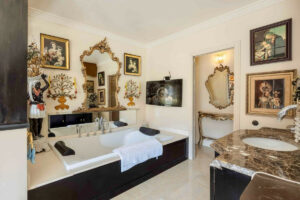 Coronando la residencia se encuentra la opulenta suite principal, un amplio espacio de descanso con una majestuosa cama con dosel, una soleada sala de estar y un lujoso baño de concepto abierto. Aquí, bañeras exentas y acabados artesanales crean un santuario tipo spa. Los dormitorios adicionales cuentan con baños en suite decorados con detalles de primera calidad, complementados con un práctico aseo de invitados ubicado entre ellos.