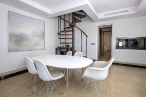 El luminoso salón se abre a una terraza cubierta con vistas abiertas al mar y a los jardines del complejo, creando un espacio ideal tanto para relajarse como para recibir invitados. El suelo de mármol, la calefacción por suelo radiante, el aire acondicionado y el sistema domótico aportan confort y tecnología en cada detalle.