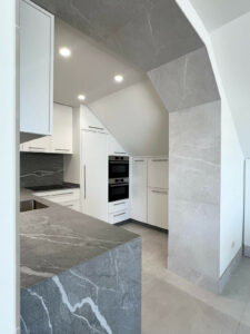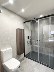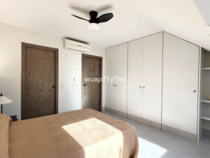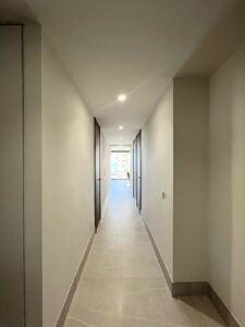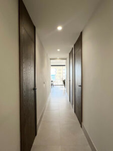 La renovación se realizó con materiales de alta calidad, incluyendo puertas de roble de suelo a techo, armarios empotrados con iluminación interior, muebles de baño personalizados en roble y encimeras y electrodomésticos de primera calidad. El apartamento se entrega completamente amueblado y listo para entrar a vivir.