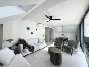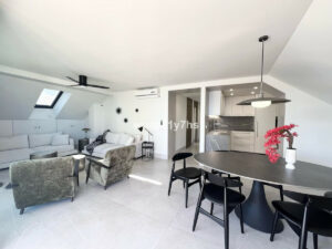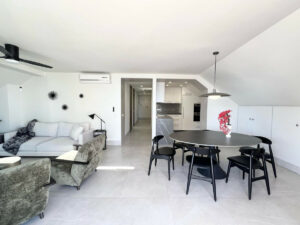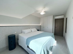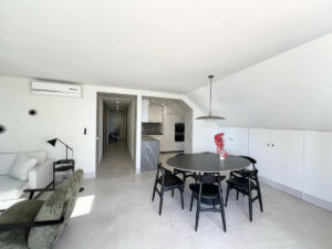 Completamente renovado con acabados nuevos y de alta calidad, este ático cuenta con vistas panorámicas al mar, una amplia terraza de 46m², una plaza de garaje privada y un trastero.