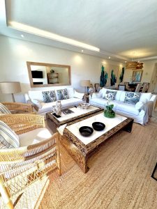 EXCLUSIVA -UNICO. PRECIOSO. REFORMADO E IMPECABLE. Amplio ático dúplex de 4 dormitorios, ubicado en Alhambra del Golf, una de las urbanizaciones más emblemáticas de Guadalmina Baja. Posee amplias estancias y dos terrazas en ambas plantas, que suman 70 metros. En la planta inferior se encuentra un gran salón comedor con acceso a la terraza semicubierta, con orientación sur y vistas a las zonas comunes de jardines, beach, piscinas y zona niños, de la urbanización. También dispone de cocina totalmente equipada, con zona de lavadero y dos dormitorios con ambos baños en suite, además de un aseo de invitados. En la planta superior se encuentra el dormitorio principal, con amplios techos abovedados y numerosos armarios, con su baño en suite y acceso a una gran terraza cubierta. En esta misma planta hay otro dormitorios con baño completo.