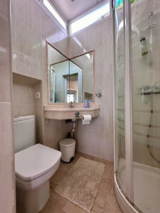 Subimos las escaleras hacia el 1er piso y nos encontramos a mano izquierda, un dormitorio abuhardillado con una luz natural increíble, y otros 2 dormitorios amplios con salida a otra terraza de la vivienda ideal para tomar el sol debido a su privacidad. ( Esta terraza podria ser implementada a la vivienda si asi se requiere). Tenemos 2 baños completos para estos 3 dormitorios en el piso de arriba.