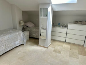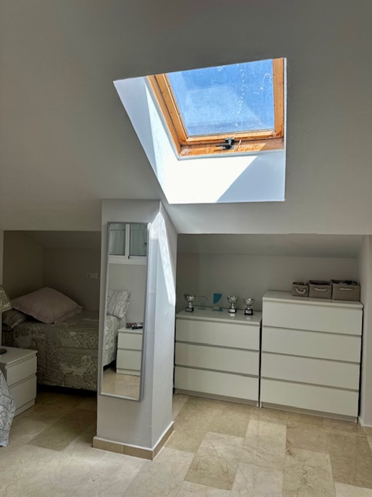 Salon- comedor, el cuál parte de el, ha sido reutilizado como (1) dormitorio con su baño en suite, en la parte de abajo del ático, previniendo así, el tener que subir escaleras para el dormitorio, si algún miembro de la familia estuviera impedido, lo cual es una magnífica opción.