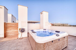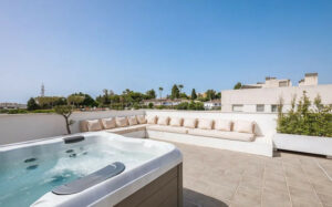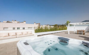 El gran protagonista de la propiedad es su espectacular solárium privado de 150 m², con impresionantes vistas a la montaña de La Concha. Equipado con jacuzzi y zona de barbacoa, se convierte en el espacio perfecto para reuniones familiares, momentos de relax o disfrutar del sol durante todo el año.