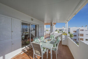 Ático – dúplex con amplias dimensiones ofrece un total de cuatro dormitorios, cuatro cuartos de baño, amplio y luminoso salón con una espaciosa cocina independiente y más de 140m2 de terraza con vistas al mar.