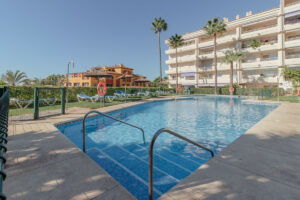El suelo de mármol blanco, la carpintería y muebles empotrados en blanco, y los baños de mármol crema le dan un toque de elegancia y sofisticación a esta propiedad. Además, incluye garaje y trastero para mayor comodidad. La ubicación es fantástica, cerca de la playa, el centro, supermercados y transporte público. La comunidad cuenta con piscina y seguridad 24 horas para mayor tranquilidad.