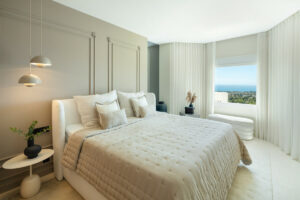 La suite principal destaca como un refugio privado con abundante luz natural, convirtiéndose en el lugar ideal para relajarse mientras se disfruta de las vistas al mar Mediterráneo y a la emblemática montaña de La Concha. Dos dormitorios adicionales, igualmente bien equipados, son perfectos para invitados o familiares, ofreciendo discreción y comodidad. Un baño de cortesía y un trastero añaden aún más comodidad, elevando la funcionalidad de la vivienda.