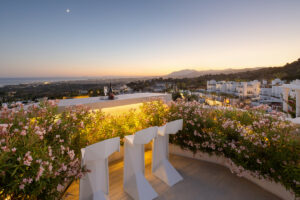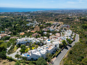 La comunidad de Jardines Colgantes, también conocida como Marbella Hill Club, es reconocida por su exclusividad, privacidad y baja densidad de desarrollo. Calles anchas bordeadas de árboles y jardines meticulosamente cuidados crean una atmósfera tranquila, mientras que la ubicación elevada asegura que los residentes disfruten tanto de seguridad como de vistas impresionantes. Las propiedades en la zona varían desde villas de estilo andaluz tradicional hasta residencias contemporáneas, conformando un paisaje arquitectónico elegante y diverso.