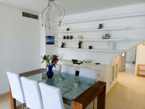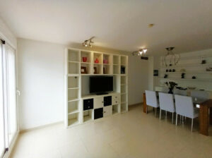 Un recibidor amplio y acogedor da paso a un cómodo salón-comedor con acceso directo a una terraza, perfecta para disfrutar de las vistas y de la vida al aire libre. La cocina, totalmente equipada, cuenta además con un balcón privado. En esta planta se encuentran dos dormitorios de buen tamaño y dos baños, ofreciendo comodidad y flexibilidad para familia o invitados.
