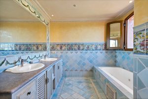 Dispone de cinco dormitorios, todos con baño en suite, más un aseo de cortesía. Cada estancia ha sido diseñada para ofrecer un ambiente cálido y elegante, mientras que la suite principal, ubicada en el último piso, cuenta con un vestidor de ensueño y una terraza privada con vistas al mar Mediterráneo.
