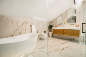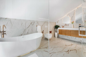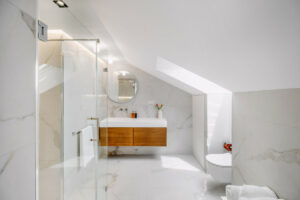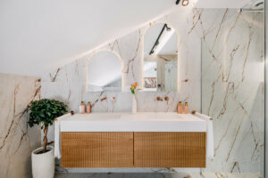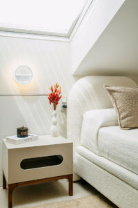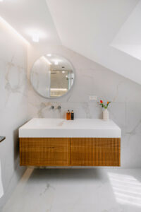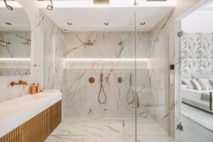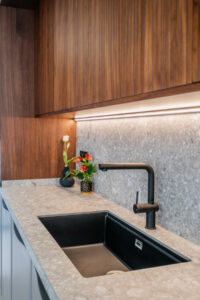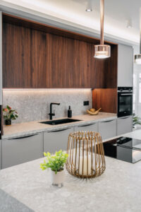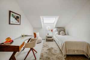 La remodelación, completada en 2025, combina materiales naturales, detalles de madera de nogal e iluminación cálida para crear un interior tranquilo y moderno. La planta principal cuenta con un salón y comedor de planta abierta con una cocina bien equipada, incluyendo electrodomésticos Siemens, una isla de piedra, nevera doble, enfriador de vino integrado y una despensa de mayordomo separado.
