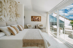 Hay cinco dormitorios y cinco baños en total, con la suite principal que ofrece su propia terraza, vestidor y un baño privado terminado a un alto nivel. Terrazas y balcones envuelven alrededor de la propiedad, dando una selección de sol o sombra durante todo el día y un montón de espacio para comer al aire libre o simplemente disfrutando de las vistas.