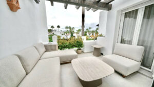 El apartamento está situado en la prestigiosa urbanización Costalita, una de las más demandadas en primera línea de playa en Estepona. Ofrece preciosos jardines tropicales muy bien cuidados, piscina, acceso directo a la playa y al paseo marítimo, además de todos los servicios cercanos: restaurantes, tiendas, campos de golf y un colegio en Cancelada. A solo 10 minutos de Puerto Banús y unos 12 minutos del centro de Estepona.