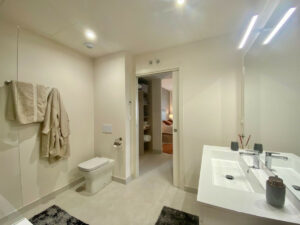 La cocina de concepto abierto está equipada con electrodomésticos de alta eficiencia de Bosch y sistema de aerotermia. El luminoso salón-comedor potencia la vida interior-exterior. Los baños cuentan con suelo radiante, aportando un extra de confort.