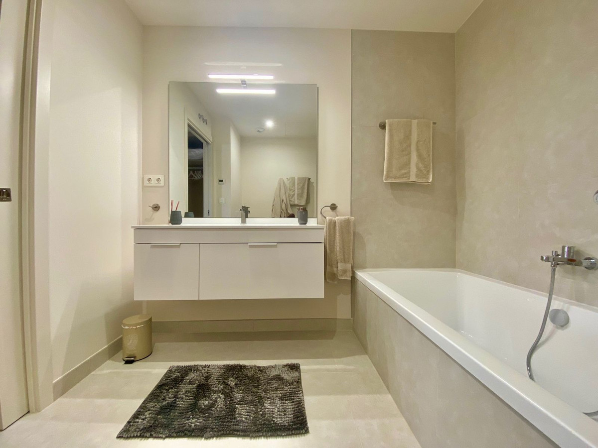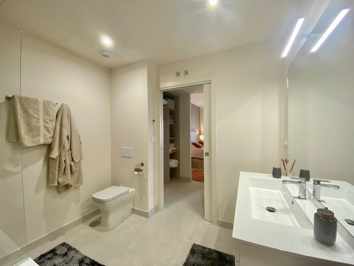 La vivienda ofrece 2 amplios dormitorios y 2 baños elegantes, incluyendo una suite principal con vestidor y baño en suite. Con 117 m² construidos, dispone de 86 m² interiores que se integran perfectamente con una magnífica terraza de 31 m² orientada al suroeste, con vistas laterales al mar y barbacoa — ideal para disfrutar de inolvidables atardeceres en la Costa del Sol.
