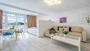 El apartamento se encuentra en la planta 7 el Ático, lo que garantiza una privacidad total y unas vistas panorámicas absolutamente bonitas. Disfruta de atardeceres mágicos y de vistas al mar, las montañas o el pueblo desde tu propia terraza.