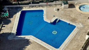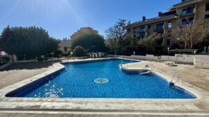 La comunidad cuenta con jardín, piscina, recepción 24 horas y aparcamiento comunitario.
