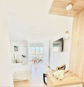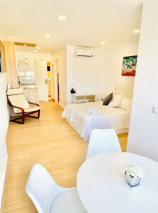 Estudio muy luminoso, completamente reformado hace un mes, con diseño moderno y alta calidad. Dispone de cocina abierta y cuarto de baño con inodoro y ducha empotrados. Listo para disfrutar.