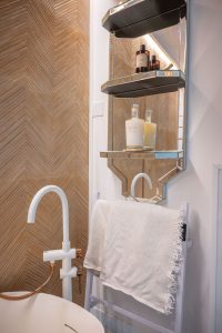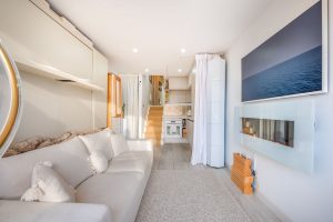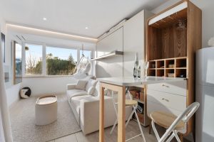 Cada centímetro del estudio se ha aprovechado al máximo, ofreciendo amplias soluciones de almacenamiento integradas que maximizan el espacio sin comprometer la estética. El interior combina funcionalidad con un diseño boutique, creando un ambiente refinado y muy habitable.
