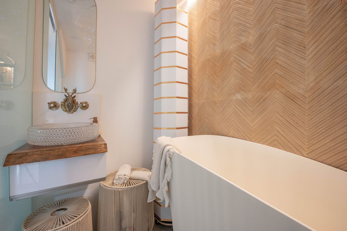 El confort está garantizado durante todo el año gracias a la calefacción por suelo radiante, mientras que la cocina está equipada con un horno de vapor de alta gama para una cocina moderna y saludable. El baño incluye una lujosa bañera japonesa, que ofrece una experiencia tipo spa, poco común en propiedades de este tamaño.