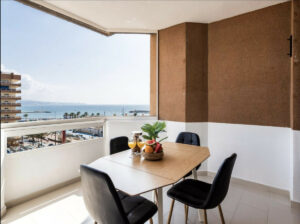 Propiedad amueblada, con cocina equipada, baño, orientado al este con vistas al mar, playa y puerto.