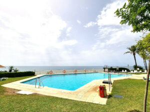 ¡Este fantástico estudio es una increíble oportunidad para tener una propiedad en una ubicación privilegiada en Mijas Costa! Situado en un complejo en primera línea de playa, podrás disfrutar de vistas al mar y de la comodidad de tener la playa a pocos pasos. La propiedad cuenta con una piscina comunitaria, pistas de tenis y pádel comunitarias, es ideal para el transporte público y está cerca de numerosos campos de golf de primera clase. La zona es un centro vibrante con una gran cantidad de tiendas, bares y restaurantes a poca distancia, por lo que no es necesario un coche.