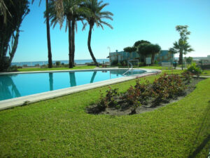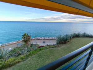 Destaca su terraza con toldos y bonitas vistas al mar, perfecta para disfrutar del clima de la Costa del Sol.