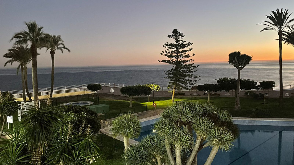 Destaca su terraza con toldos y bonitas vistas al mar, perfecta para disfrutar del clima de la Costa del Sol.