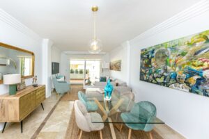 Un refugio de elegancia en el corazón de Nueva Andalucía: exclusivo apartamento con vistas a la montaña en Las Brisas.